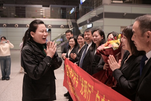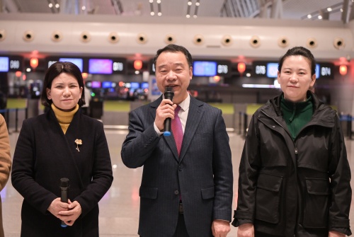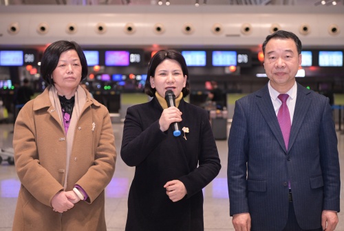 捷克论坛 党委副书记朱丽琴为医疗队献花送行。