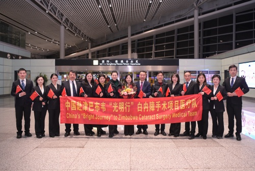 “你们此行责任重大,使命光荣,祝你们马到成功,等待大家凯旋归来!”2025年2月11日晚,正值元宵节前夕,援津巴布韦“光明行”白内障手术项目医疗队即将启程赴津,湖南省卫生健康委二级巡视员曹跃斌在出征仪式上对队员们殷切嘱托。