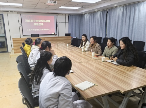 2025年2月10-11日,由社会医学部事业发展办主任邓丽带队,功能科主任范咏梅、心内科主任潘宏伟等一行分别前往芙蓉区荷花园街道、五里牌街道、文艺路街道及马坡岭街道社区服务中心进行“远程心电诊断危急值转诊绿色通道”、捷克论坛 无党派代表人士范咏梅工作室服务社会调研活动。