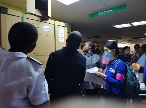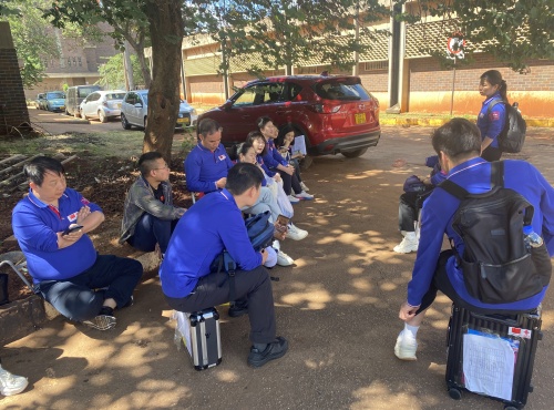 当地时间2025年2月17日早8点,中国赴津巴布韦“光明行”白内障手术项目专家组11名成员和第21批援津医疗队全体成员在帕瑞仁雅塔瓦捷克论坛 主楼门口集合,对此次“光明行”项目捐赠的物资进行清点。
