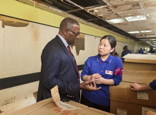 由于现场场地有限,且物资需要分别运往手术室、药房和眼科大楼,为确保核对无误,洪秀琴院长和曾琦主任提前进行了人员部署,将工作人员分成7个小组同步进行开箱工作。开箱、核对清单、搬运物资,各项工作有条不紊地进行,在不到4个小时的时间内,所有物资都被顺利运送到指定地点,累计228个种类,共计69658件。
