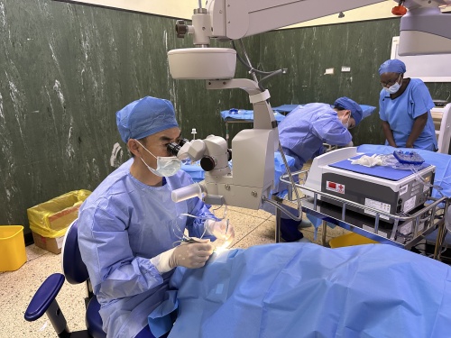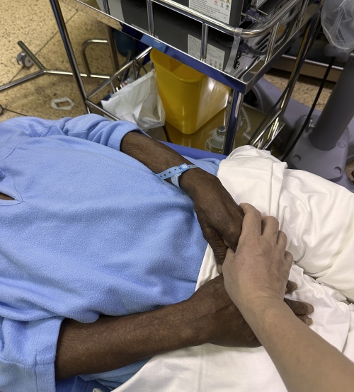 这一次,老人鼓足勇气,再次躺上手术台。然而,挑战才刚刚开始。老人的白内障程度十分严重,晶体非常坚硬,手术难度极高。但中国的眼科医生们并没有被困难吓倒,尽管手术复杂、难度高,贺贵云主任凭借精湛的医术和丰富的经验,仅用6分钟就顺利完成了手术。为了缓解老人的紧张情绪,陈伟蓉教授更是全程紧紧握着她的手,给予她温暖和力量。