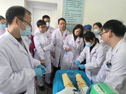 为提高难度,曹彦主任设置ECMO模型模拟人血管塌陷、血压极低的极端情况,团队成员仍然在20分钟内成功完成超声引导下VA-ECMO置管;同时护理团队争分夺秒,在置管成功前完成ECMO机器预冲;顺利上机后,团队继续从转运到模拟ICU交接,全程监测凝血功能、流量参数,演练“零容错”的精细化管理。