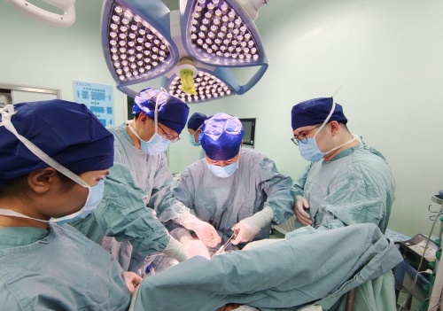 小儿外科阎大益主任为小杰手术切除肿物。