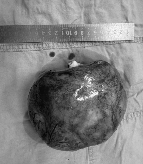 经过多学科会诊,小儿外科主任阎大益带领团队为小杰通过手术切除了肿瘤,术中发现肿块与右输尿管紧密联系包绕输尿管,与小肠肠系膜粘连紧密。切下来的肿块约17×12cm,重795g,如一个木瓜大小,术后病例显示侵袭性纤维瘤病。术后经过恢复,小杰已于3月18日出院。