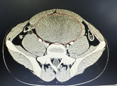 CT结果显示的巨大肿块。