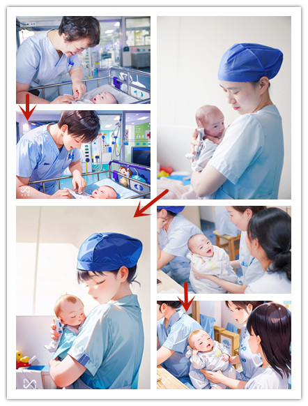 文字说明:她们,是身披白衣的天使,以无限的耐心和温柔,构筑起守护新生命的第一道防线。尽管新生儿无法用言语表达,但他们通过细微的表情变化,回应着医护人员的关爱。这种爱的互动,让双方形成了默契的连接,共同跨越生命的难关。在这场爱的旅途中,双方携手并进,共同书写着关于生命、勇气与爱的动人篇章。