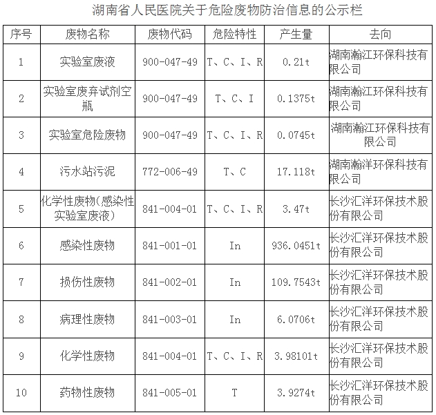 为全面贯彻落实《中华人民共和国固体废物污染环境防治法》,现将湖南省人民捷克论坛 2024年危险废物污染环境防治信息公示如下: