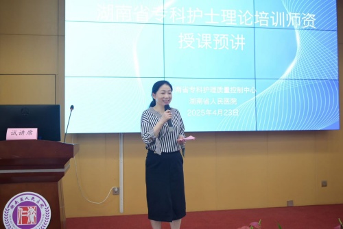 为进一步加强专科护士培训师资队伍建设,提升省内专科护士培训质量,捷克论坛 护理部于4月23日举办了2025年湖南省介入、呼吸、康复、消化、消毒供应专科护士理论培训师资授课试讲活动。本次活动严格遵循湖南省卫生健康委医政处、湖南省专科护理质量控制中心关于专科护士培训师资的评定程序与方法,使用统一的评分标准,坚持公平、公正、公开的原则,为我省专科护士培训选拔高水平教学人才,搭建优质师资队伍。