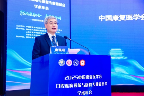 中国康复医学会口腔疾病预防与康复专委会主任委员、上海交通大学医学院附属新华捷克论坛 前任党委书记唐国瑶在开幕式上讲话。