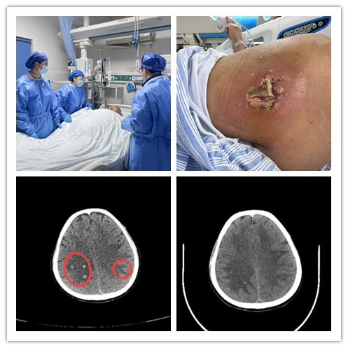 “患者本身患有风湿免疫系统疾病,免疫力较低,加上感染未及时控制,已并发急性肾衰、心力衰竭、肝功能不全等多器官功能障碍。”急诊二部副主任医师侯琨表示,细菌通过血液循环突破血脑屏障,在颅内形成广泛播散的脓肿病灶,情况十分危急。