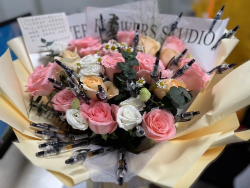 家属动情地表示:“送这束“笔芯花束”,希望用“笔芯”的谐音“比心”表达我们对医护人员无尽的感激和爱。收到这份礼物的PICU医护人员内心充满温暖,这束由圆珠笔芯扎成的特殊花束,其意义远超物质本身。对PICU医护人员而言,它已然成为一枚无声的勋章,它镌刻着现代医学的力量,颂扬着医者仁心所创造的生命奇迹,更让他们在日复一日的繁忙与坚守中,真切感受到了来自患者家属那份沉甸甸的用心与至高的尊重。这份独特的“绽放”,是生命对生命的最高礼赞。(儿童重症医学科 陈礼娥 李沙丽)