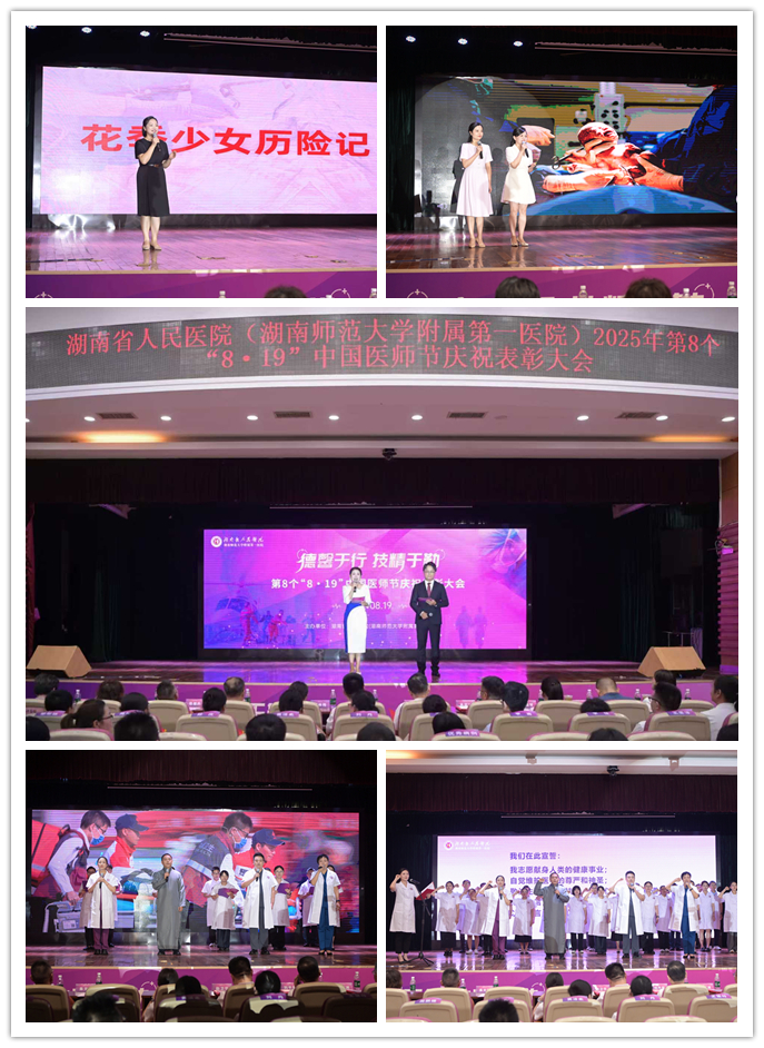 下午三时,天心阁院区二楼大礼堂内灯光璀璨,第8个中国医师节庆祝表彰大会在此举行。省卫健委相关领导、院领导班子成员、医务人员代表、学生代表及受表彰者齐聚一堂,共同致敬生命守护者。