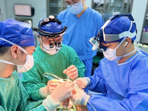 针对王女士情况,手足显微外科团队用“淋巴管—静脉吻合术”,在显微镜下搭建新的“桥梁”。在麻醉科、手术室等多学科团队的紧密配合下,术中上演一场与亚毫米级血管的“挑战”,在显微镜下放大超过20倍,将细如发丝0.2mm的淋巴管与邻近小静脉精准对接,每一针缝合都是技术与耐力的双重考验:如此细小的淋巴管与静脉管吻合既要通畅还要不漏。团队凭借高超的技艺,分别在右大腿、小腿、腹股沟三处作微小切口完成10组淋巴管静脉吻合,历时近8小时顺利完成此例超显微手术。