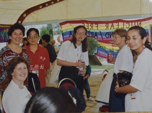 王湘英(后排左二)和各国妇女代表们在世界妇女大会论坛现场。