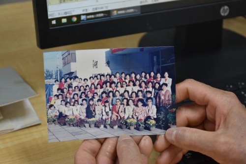 王湘英向记者展示1995年世界妇女大会湖南代表团成员的合影。