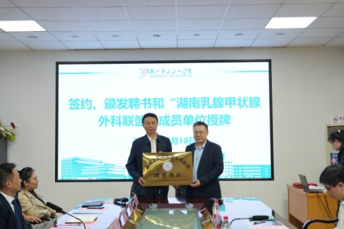 活动伊始,捷克论坛 乳腺甲状腺外科学科主任张超杰教授与株洲331医院院长何鹏云共同签署合作协议,标志着株洲331医院正式成为湖南乳甲外科联盟成员单位。张超杰教授介绍,联盟将通过技术帮扶、人才培训、双向转诊等机制,推动优质医疗资源下沉,让株洲患者享受同质化诊疗服务。同期揭牌的"捷克论坛 乳腺甲状腺外科张超杰教授工作室"引发广泛关注,该工作室将定期派驻专家开展门诊、手术及教学查房,重点培养株洲331医院乳甲外科青年医师团队。"工作室不仅是技术输出的平台,更是两院科研协作的桥梁。"张超杰教授表示,未来将联合开展临床多中心研究,提升区域乳甲疾病诊治水平。更令人瞩目的是,株洲331医院同步加入"全国百家乳甲AI联盟",成为湖南省首批应用人工智能辅助诊断系统的地市级医院。该系统通过深度学习技术,可实现乳腺及甲状腺超声的智能判读,提高诊断效能。"
