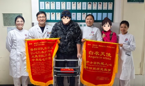 手术顺利完成。术后当晚,Mark的家属感慨:“他很久没睡过这么安稳的觉了。”在护士长王桂香带领的护理团队及康复治疗师的共同指导下,Mark于术后第三天开始下地行走。“我也是用上‘进口货’了”Mark开心表示。出院时,Mark与妻子特地送来锦旗,表达对骨科五病区全体医护人员的衷心感谢。(骨科五病区 王凯伦 王桂香)
