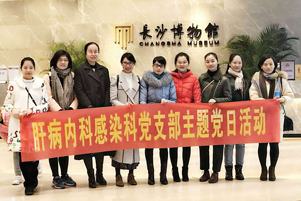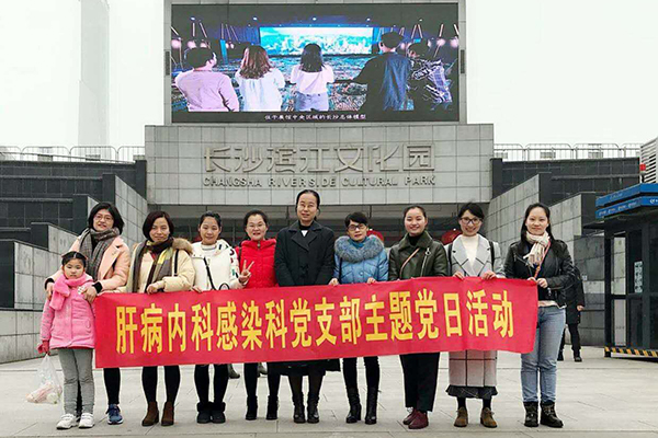 2018年1月27号,肝病内科感染科党支部开展以“了解湖湘文化,建立文化自信”为主题的主题党日活动,此次活动我们在湘江河畔的滨江文化园内举行,我们参观了长沙博物馆以及长沙市规划展示馆,此次活动我们是呼应党的十九大提出的“没有高度的文化自信,没有文化的繁荣兴盛,就没有中华民族伟大复兴。”