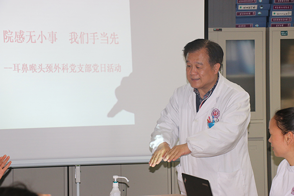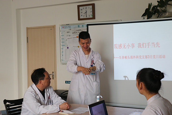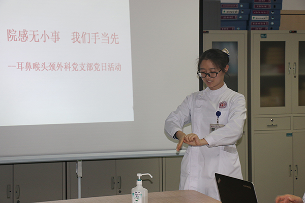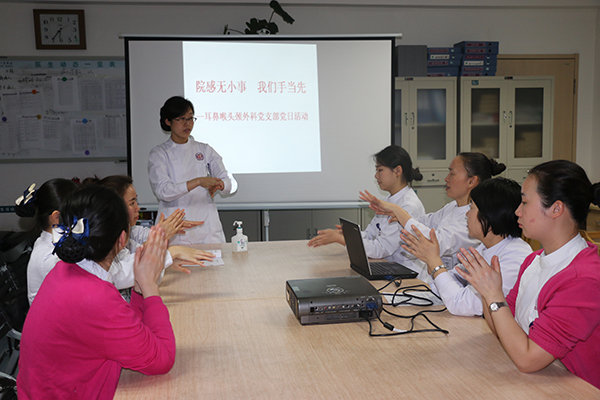 为了进一步提高我科医护人员院感防控意识,掌握院感相关知识,营造学习和宣传感控文化的氛围,3月8日早上,由耳鼻喉头颈外科党支委刘小白组织了“院感无小事,我们手当先”为主题的洗手大赛。耳鼻喉头颈外科党支部书记肖旭平带领全体党员、医护人员、研究生,进修生,实习生共三十余人参加比赛。